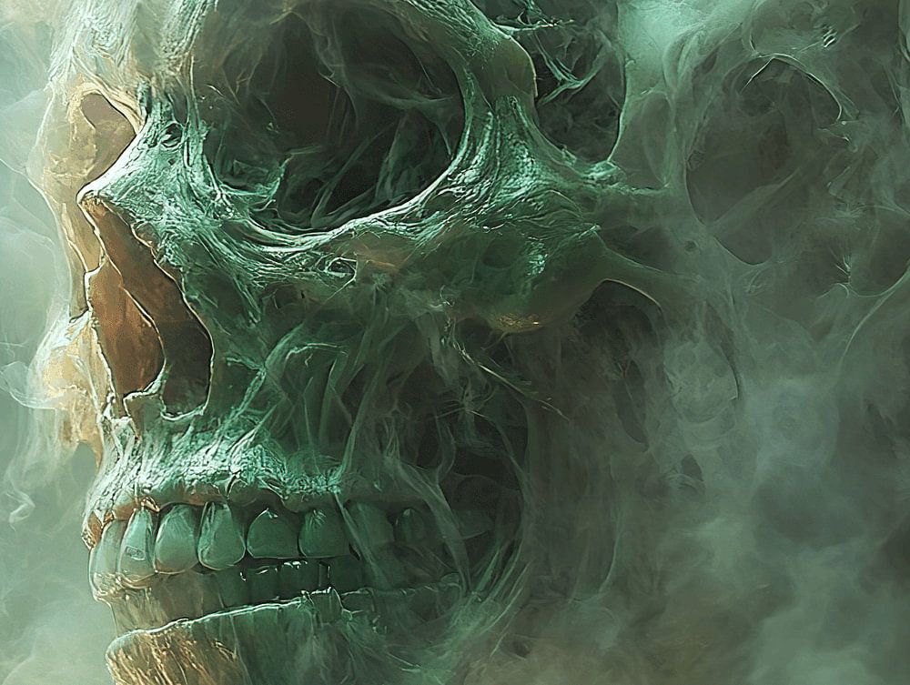 Holen Sie sich mit dieser detaillierten digitalen Illustration eines Schädels in einer mysteriösen und dramatischen Komposition ein kraftvolles Kunstwerk in Ihr Zuhause. Dieses Kunstwerk kombiniert abstrakte und moderne Stile mit Einflüssen aus Gothic, Grunge und surrealistischen Kunstströmungen, was es zu einem auffälligen und vielseitigen Kunstwerk macht, das perfekt in eine Vielzahl von Innenräumen passt. Die faszinierenden Details und Texturen erzeugen einen dynamischen und ausdrucksstarken Effekt, der sofort die Aufmerksamkeit auf sich zieht und Emotionen hervorruft. Dieses Kunstwerk eignet sich ideal als Wanddekoration in einem Wohnzimmer, Büro, Kreativstudio oder Industrieraum und ist eine einzigartige und stilvolle Ergänzung für jede Umgebung.