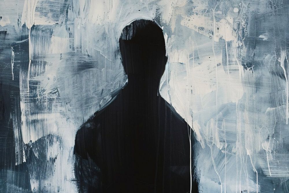 Dieses abstrakte Kunstwerk strahlt ein Gefühl von Isolation und Introspektion aus. Die dunkle Silhouette einer menschlichen Figur, umgeben von einem dunstigen, monochromen Hintergrund, ruft Gefühle von Einsamkeit und Selbstreflexion hervor. Die stromlinienförmigen Pinselstriche und die subtilen Tonvariationen verleihen dem Werk eine dynamische Tiefe, während die schlichte Farbpalette eine heitere und kontemplative Atmosphäre schafft. Dieses Kunstwerk eignet sich perfekt für einen modernen Raum wie ein Schlafzimmer oder ein Büro und lädt den Betrachter ein, über die Komplexität der menschlichen Existenz und die Kraft der Stille nachzudenken. Ein kraftvolles Werk, das sowohl ästhetisch als auch emotional anspricht.