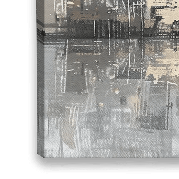 In dieser abstrakten Skyline von NYC wurden klassische Wolkenkratzer in elegante Striche und Flächen verwandelt. Das Ergebnis ist ein Werk, das nicht nur das Bild einer Stadt malt, sondern auch ein Gefühl von Dynamik und Energie vermittelt.