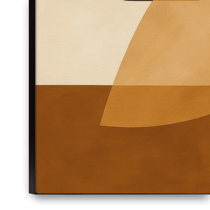 Eine anmutige Tulpe mit zwei langen Blättern steht im Mittelpunkt zwischen weichen geometrischen Flächen in warmen Erdtönen. Abgerundete Rechtecke und eine ovale Form schaffen ein Gleichgewicht, während sich dunkle und helle Flächen abwechseln und einen ruhigen Kontrast bilden. Die klaren Linien und der subtile Farbverlauf sorgen für…