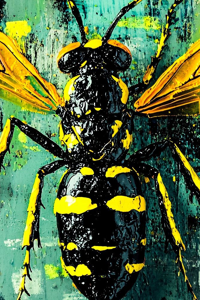 Dieses auffällige Design verbindet die Kraft der abstrakten Kunst mit der Schönheit der Natur. Die zentrale Wespe mit ihren leuchtenden gelben und schwarzen Farben fällt sofort ins Auge und bildet einen schönen Kontrast zum türkisfarbenen und blaugrünen Hintergrund. Dieses Kunstwerk strahlt Energie und Dynamik aus und ist die perfekte Wahl für Liebhaber von moderner Kunst und Naturthemen. Das detailreiche Spiel von Farben und Texturen macht es zu einem einzigartigen Werk, das in jedem Raum ein Statement setzt. Verleihen Sie Ihrem Interieur einen Hauch von zeitgenössischem Stil mit dieser einzigartigen Darstellung eines ikonischen Insekts.