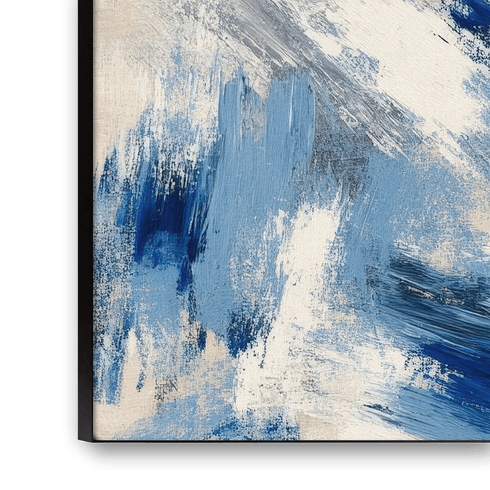 Mit lebhaften Blautönen, die dynamisch über einen sanften, neutralen Hintergrund fließen, vermittelt dieses Kunstwerk eine erfrischende Leichtigkeit. Die kraftvollen Pinselstriche erzeugen Bewegung und Energie, perfekt für ein Wohnzimmer, wo sie Gespräche anregen und eine kreative Atmosphäre schaffen können. Ein wahrer Blickfang, der…