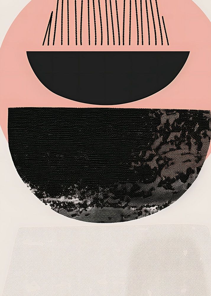 Ein abstraktes Poster mit verschiedenen Formen in weichen, warmen Farben von Grau, Schwarz und Hellrosa.