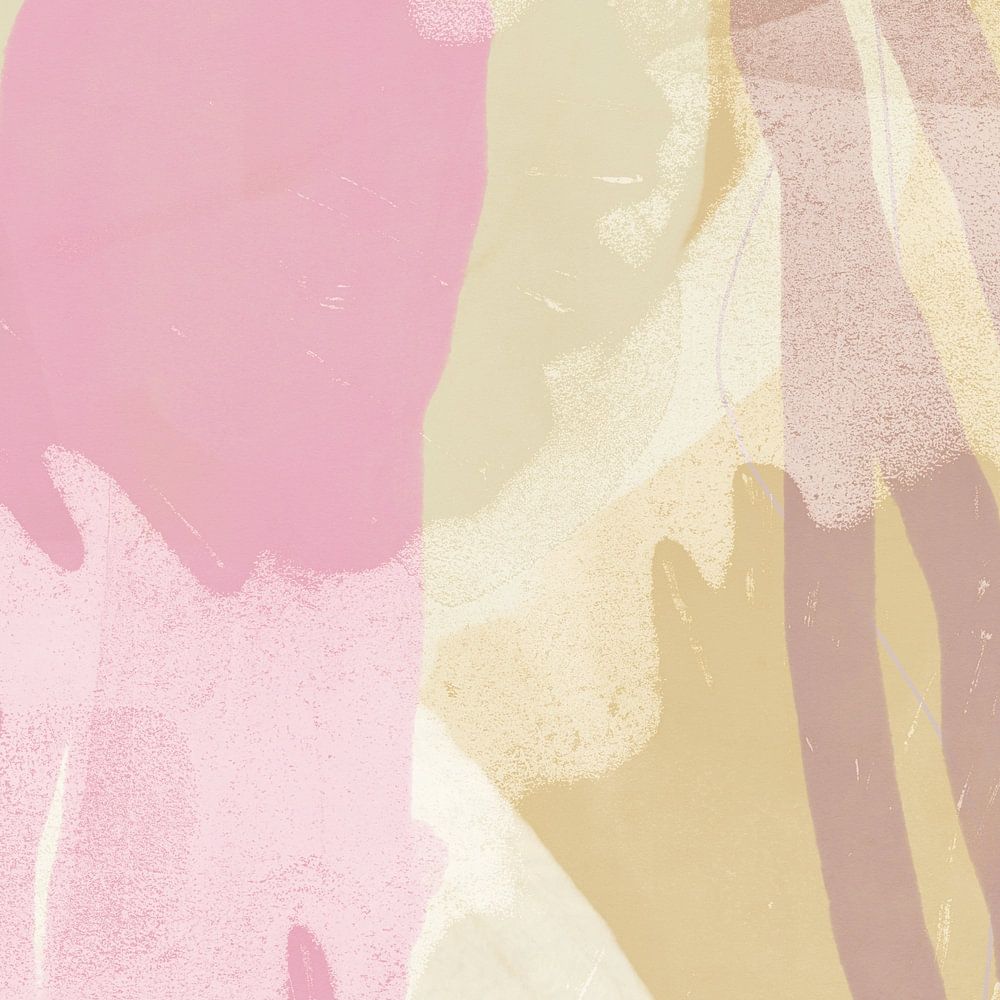 Organische Formen und Pinselstriche in weichen, zarten Pastellfarben.