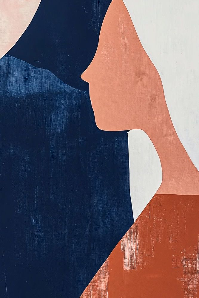 Eine moderne, minimalistische Interpretation von Romantik. Dieses Kunstwerk kombiniert sanfte Farben und kontrastreiche Formen, um eine intime, warme Atmosphäre zu schaffen. Perfekt für ein stilvolles Interieur, in dem Einfachheit und Bedeutung zusammenkommen. Die abstrakte Darstellung eines Paares verleiht ein Gefühl von Geheimnis und Eleganz, während die raffinierte Farbgebung einen zeitlosen Reiz ausübt. Ideal für Schlafzimmer, Wohnzimmer oder andere Räume, die einen ruhigen, romantischen Touch brauchen.