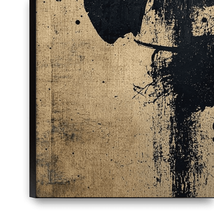 Dieses abstrakte Kunstwerk kombiniert die Kraft von Schwarz und Beige in einer subtilen und doch ausdrucksstarken Komposition. Drei markante schwarze Pinselstriche zieren die Leinwand, inspiriert von alten japanischen Maltechniken, und vermitteln ein Gefühl von Ruhe und Raffinesse. Das Gleichgewicht zwischen den dunklen und hellen Tönen…