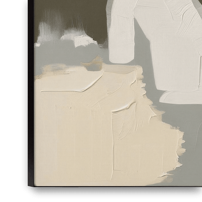 Dieses einzigartige Design kombiniert minimalistischen Stil mit abstrakter Kunst und schafft eine ruhige und gelassene Atmosphäre. Das Gemälde zeigt einen Bären, der sich in einer Landschaft aus weichen, neutralen Farben wie Grau und Beige zu spiegeln scheint. Die klaren Linien und subtilen Formen verleihen dem Werk ein modernes Flair,…