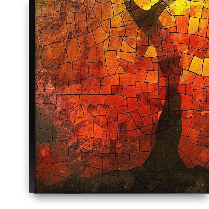 Dieses schöne digitale Kunstwerk zeigt einen abstrakten Baum mit einem farbenfrohen Hintergrund. Das Design ist eine Explosion von Farben, die von Grün- und Gelbtönen bis zu Orange und Rot reichen und zusammen ein lebendiges und dynamisches Ganzes bilden. Der Baum steht im Mittelpunkt und scheint inmitten eines kaleidoskopischen Musters…