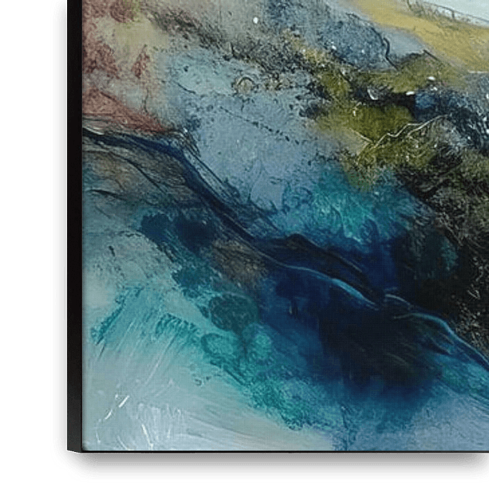 Details: abstrakt, Landschaft, Berge, modern, Leinwand, Kunst, blau, grün, weiß, gelb