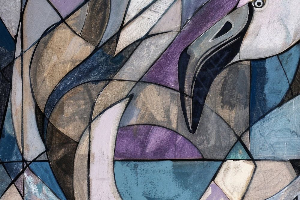 Dieses kunstvolle Werk zeigt einen Flamingo in einer faszinierenden Mischung aus abstrakten Formen und sanften Pastellfarben. Die Kombination von weichen Lilatönen und dynamischen Linien erzeugt eine harmonische und zugleich spannende Komposition. Ideal für Kunstliebhaber, die sowohl die Schönheit der Natur als auch die Kreativität moderner Kunst schätzen. Dieses Stück bringt eine subtile Eleganz und einen Hauch von Extravaganz in jeden Raum, perfekt für ein stilvolles und inspirierendes Ambiente.