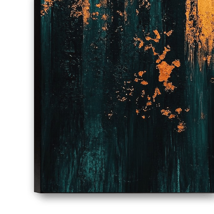 Ein bezauberndes Design, das den Zauber einer abstrakten Waldlandschaft einfängt. Das Spiel des goldenen Lichts, das sich in den tiefen Blau- und Grüntönen bricht, schafft einen stimmungsvollen und dynamischen Look. Dieses für Liebhaber moderner Kunst perfekte Stück bringt Eleganz und Tiefe in jeden Raum. Es ist ein echter Blickfang und eignet sich ideal für ein Schlafzimmer oder einen Flur, um eine rustikale und doch moderne Atmosphäre zu schaffen.