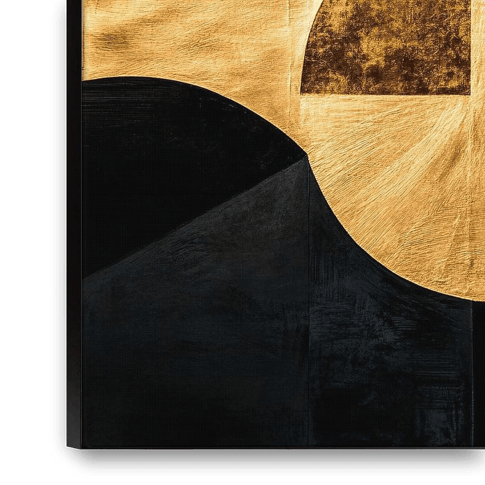 Dieses stilvolle Design kombiniert goldene Töne mit klaren geometrischen Formen und schwarzen Akzenten, die ein Gefühl von Eleganz und Modernität vermitteln. Das minimalistische Muster, bestehend aus Halbkreisen und geraden Linien, ist eine perfekte Ergänzung für moderne Innenräume. Die Kombination aus Gold und Schwarz schafft einen…