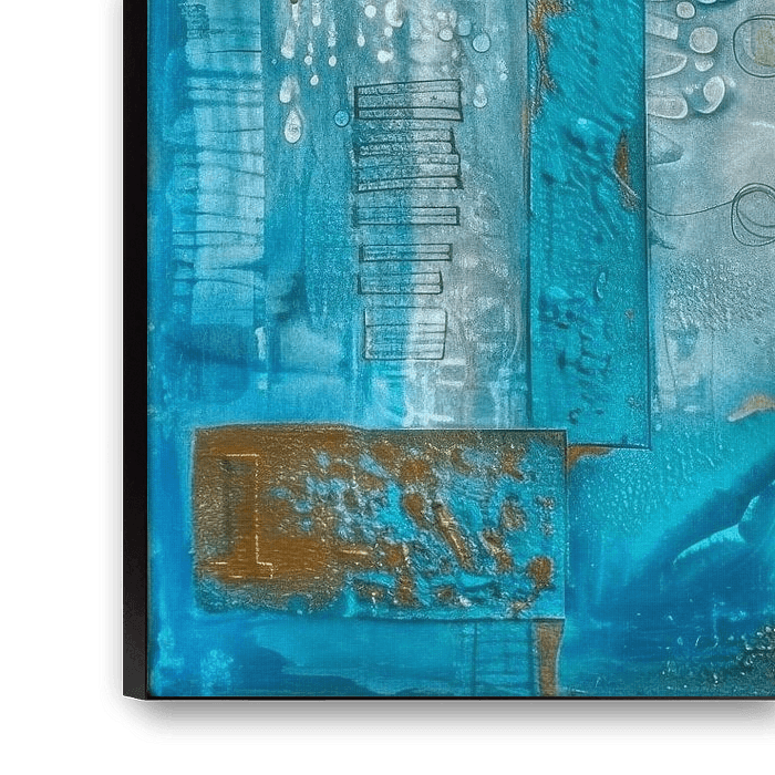 Stichwörter: Abstrakt , Blau, Türkis, Gold, Zeitgenössisch , Impasto, Sgraffito, Expressionismus, Modernes Wohnen
