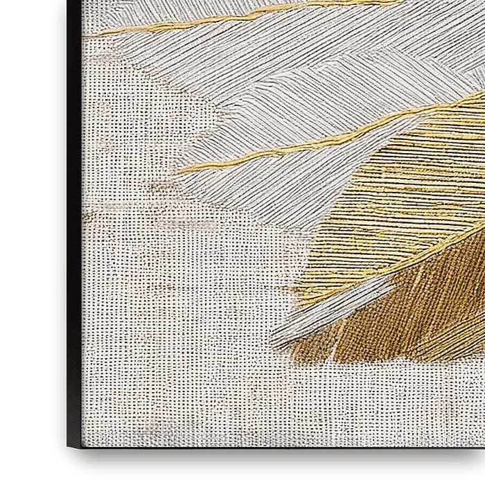 Abstrakte Arbeit mit verschiedenen Leinentexturen eines Herbstblattes.