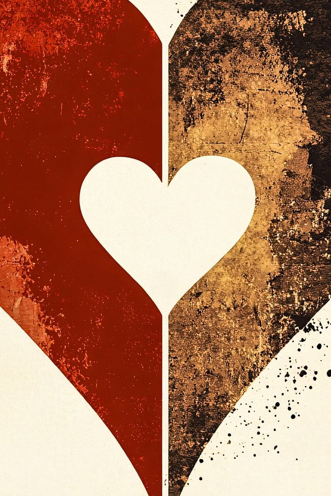 Dieses auffällige Kunstwerk verbindet Einfachheit und Symbolik in einem minimalistischen Design, das die Kraft der Liebe und des Kontrasts einfängt. Die kontrastierenden Farben und Formen verleihen ihm ein modernes und abstraktes Flair, das perfekt zu einer zeitgenössischen Einrichtung passt. Das Design zieht mit seinem Gleichgewicht aus groben Strukturen und weichen Linien die Aufmerksamkeit auf sich und passt perfekt in eine Vielzahl von Räumen wie ein Schlafzimmer oder ein Esszimmer. Dieser Kunstdruck verleiht einen Hauch von Raffinesse und hinterlässt einen bleibenden Eindruck. Ideal als Geschenk oder um einem Raum mehr Bedeutung zu verleihen.