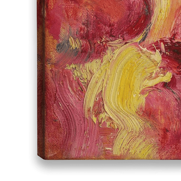 Bestelle dieses abstrakte Wandbild Abstraktes Ölgemälde, rot, rosa, gelb, orange. von Joriali Abstrakte Kunst als Reproduktion auf Leinwand, Alu-Dibond, als Poster, Fototapete oder Acrylglasbild.