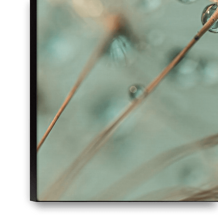 Bestelle dieses moderne Wandbild Abstraktes Quadrat: Tröpfchen ruhen auf einer Pusteblume von Marjolijn van den Berg als Reproduktion auf Leinwand, Alu-Dibond, als Poster, Fototapete oder Acrylglasbild.
