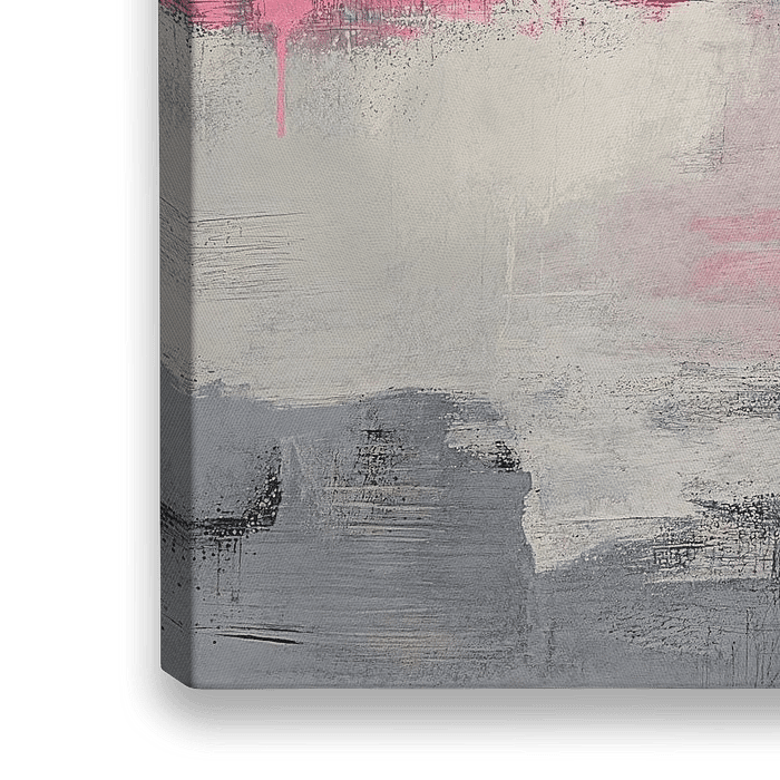 Abstraktes Pink | Pink Whisper - Dieses abstrakte Gemälde zeigt breite Pinselstriche in leuchtendem Pink und gedämpftem Grau, die einen Kontrast zwischen lebhaften und ruhigen Bereichen schaffen.