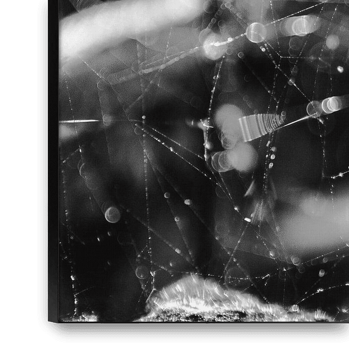 Ein Spinnennetz ist ein komplexes Gebilde, das bei näherer Betrachtung an sich schon Kunst ist. So entstehen coole abstrakte Fotos, die eigentlich von der Natur geschaffen sind.