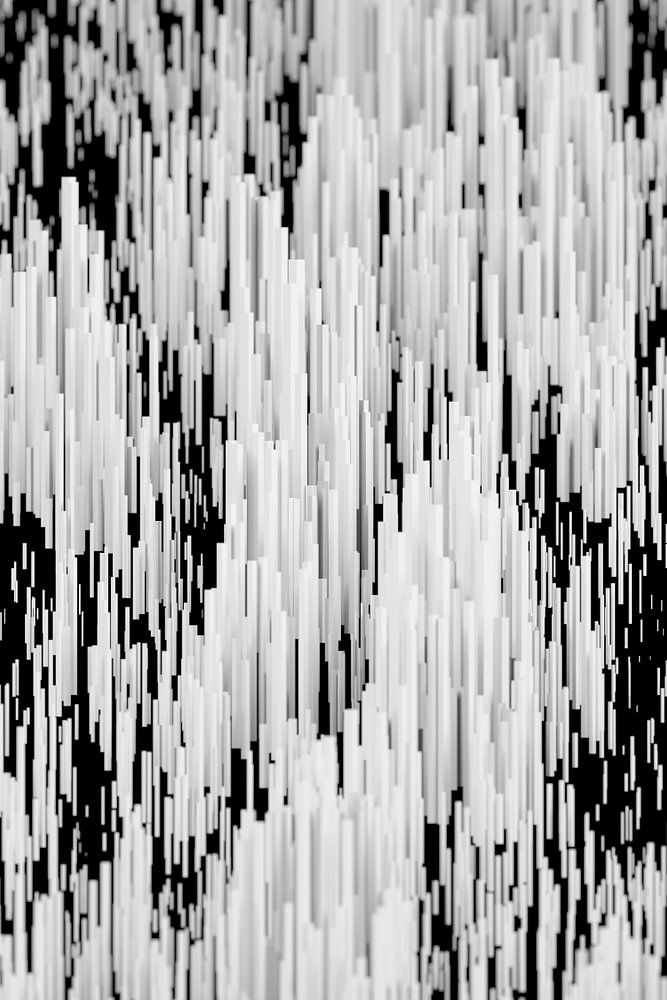 Ein Feld aus zufällig angeordneten, viereckigen grauen Stangen mit geringer Schärfentiefe.