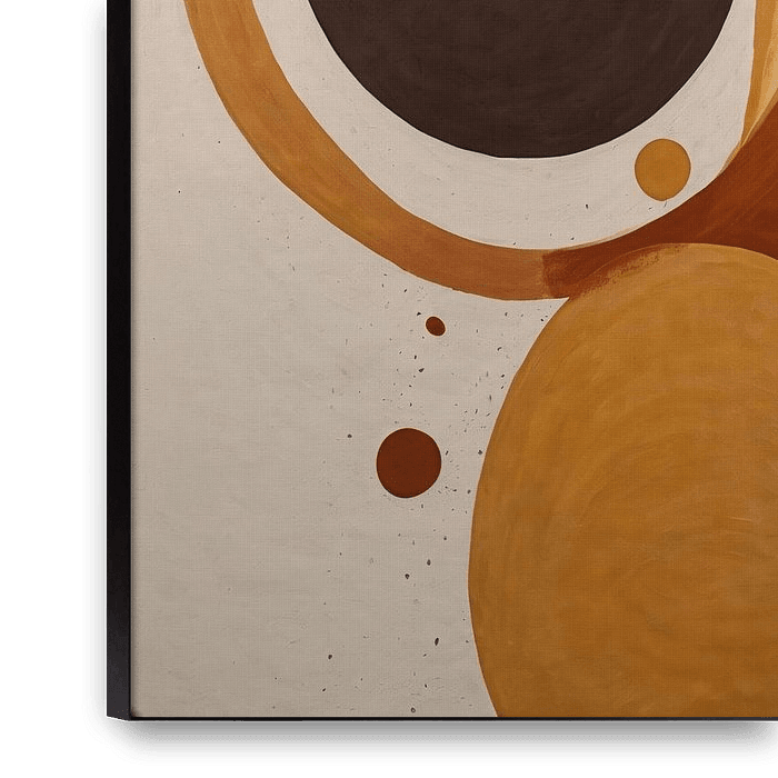 Dieses schöne Design verleiht jedem Raum einen modernen Touch. Das Kunstwerk ist eine faszinierende Kombination aus geometrischen Formen in warmen Tönen wie Orange, Braun und Gelb. Die Kreise und Quadrate scheinen fast auf der Leinwand zu tanzen und vermitteln ein Gefühl von Gleichgewicht und Harmonie. Dank seines minimalistischen…