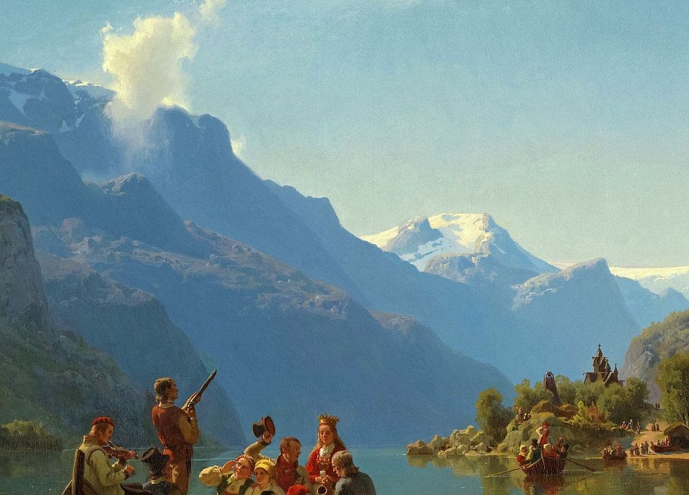 Über "Adolph Tidemand und Hans Gude,Brautzug auf dem Hardangerfjord, 1848"