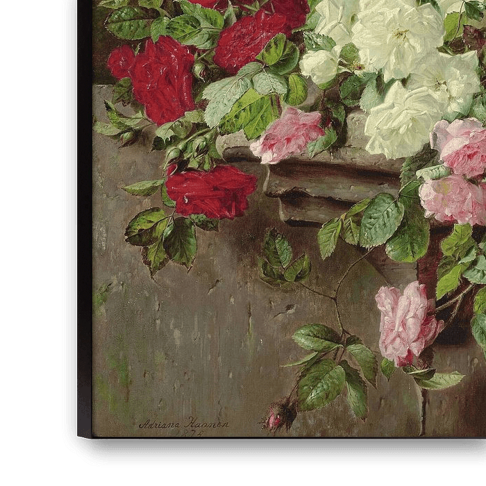 Adriana Johanna Haanen,Ein Stillleben mit Rosen, die über einen Steinsockel stürzen