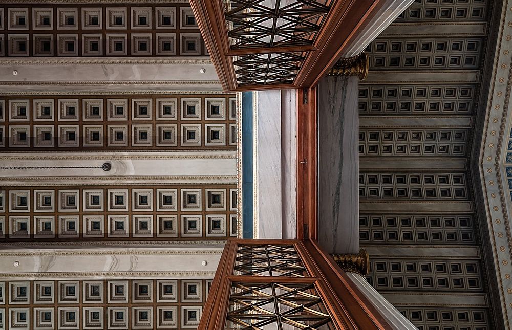 Athener Altstadt, Attika - Griechenland - 12 28 2019 Innenraum der griechischen Nationalakademie im neoklassischen Stil mit Ornamenten
