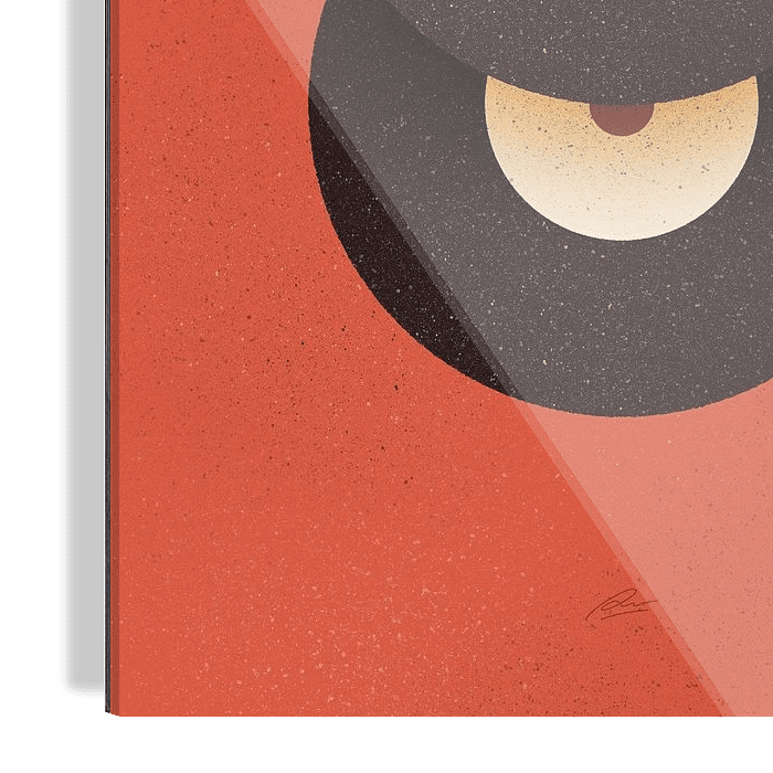 Rendering im Bauhaus-Stil von zwei Retro-Musik-LPs vor rotem Hintergrund mit Grunge-Effekt.