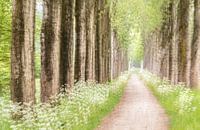 Schöne Allee mit blühendem Pfeifenkraut. Das Foto wird mit Mehrfachbelichtungen hergestellt, wodurch ein abstraktes Bild entsteht.