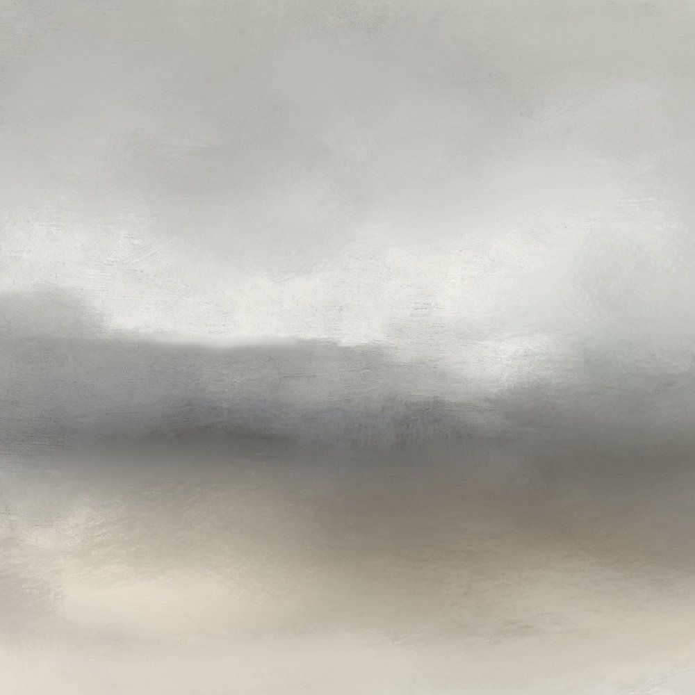 Melancholisches Landschaftsbild auf offener See. Sanfte Pasteltöne in grau, blau und beige.
