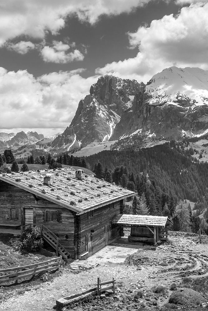 Almhütten auf der Seiser Alm, Südtirol, Italien