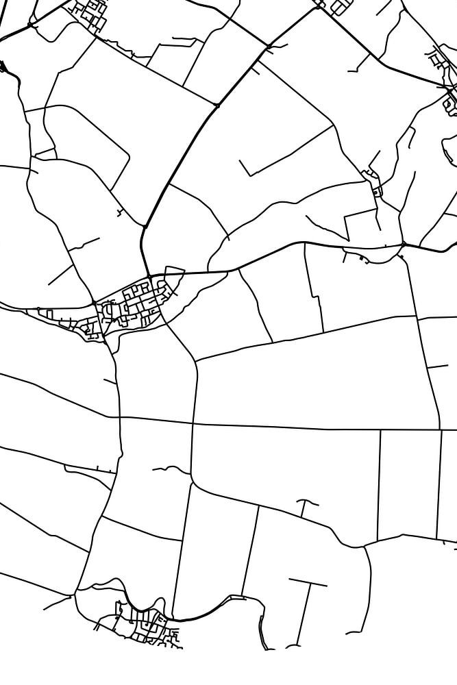 Schwarz-weiße Karte, Straßenkarte oder Straßenplan von Almkerk. Almkerk befindet sich in der Gemeinde Altena in der Provinz Noord-Brabant. Der Stadtplan zeigt alle öffentlichen Straßen in Almkerk. Außerdem ist die Karte mit den Koordinaten des Zentrums von Almkerk versehen.