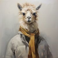 Alpaka mit Schal | Alpaka-Kunstwerk von Wunderbare Kunst