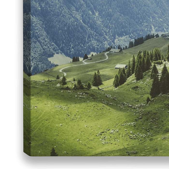 Bestelle dieses Landschafts-Wandbild Alpen in Grün von Patrycja Polechonska als Reproduktion auf Leinwand, Alu-Dibond, als Poster, Fototapete oder Acrylglasbild.