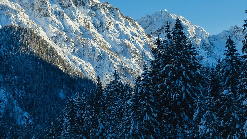 Blick auf die Landschaft in den österreichischen Alpen von einem Wandergebiet aus.