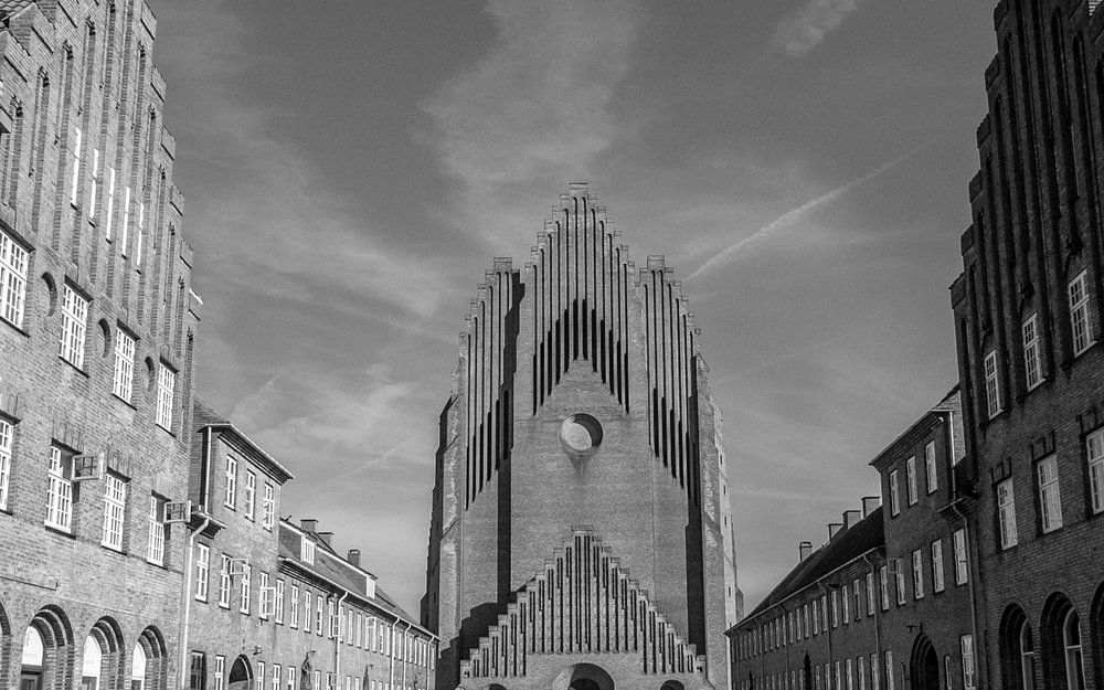 Eine unerwartete Begegnung in der wunderschönen Umgebung der Grundtvig-Kirche in Kopenhagen.