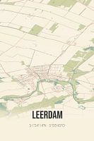 Retrokarte von Leerdam, gelegen in der Gemeinde Vijfheerenlanden, Provinz Utrecht. Die Karte zeigt öffentliche Straßen, Wasserläufe (Seen, Bäche und Gräben) und Wälder in und um Leerdam. Darüber hinaus enthält die Karte die Koordinaten von Leerdam.