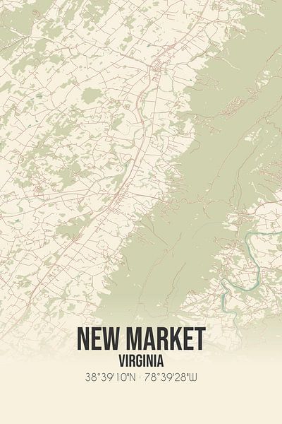 Bestelle diese Illustration Alte Karte von New Market (Virginia), USA. von Ortsdrucke als Reproduktion auf Leinwand, Alu-Dibond, als Poster, Fototapete oder Acrylglasbild.