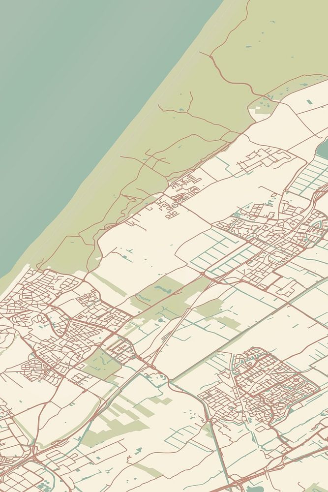 Retrokarte von Noordwijk, gelegen in der Gemeinde Noordwijk, Provinz Zuid-Holland. Die Karte zeigt öffentliche Straßen, Wasserläufe (Seen, Bäche und Gräben) und Wälder in und um Noordwijk. Darüber hinaus enthält die Karte die Koordinaten von Noordwijk.
