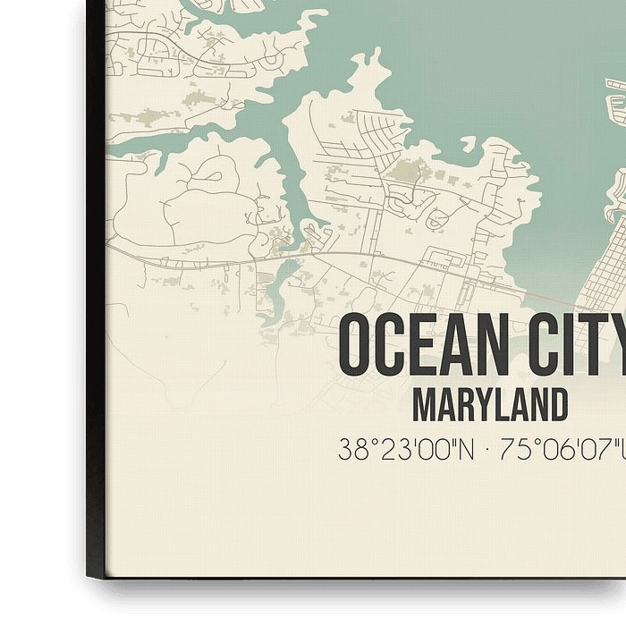 Bestelle diese Illustration Alte Karte von Ocean City (Maryland), USA. von Ortsdrucke als Reproduktion auf Leinwand, Alu-Dibond, als Poster, Fototapete oder Acrylglasbild.