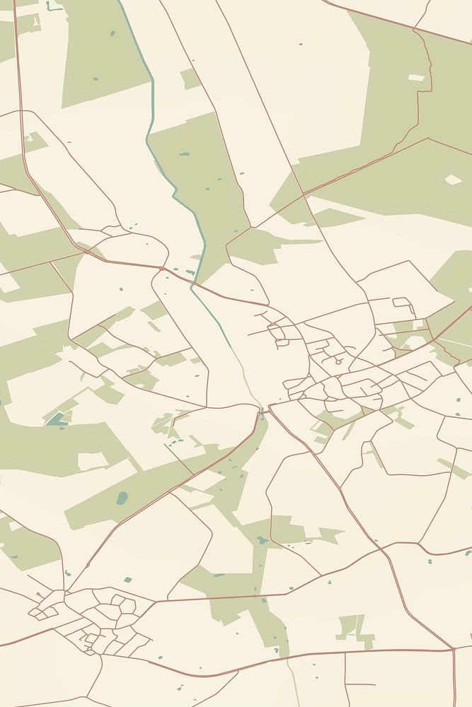 Retrokarte von Vessem, gelegen in der Gemeinde Eersel, Provinz Nordbrabant. Die Karte zeigt öffentliche Straßen, Wasserläufe (Seen, Bäche und Gräben) und Wälder in und um Vessem. Darüber hinaus enthält die Karte die Koordinaten von Vessem.