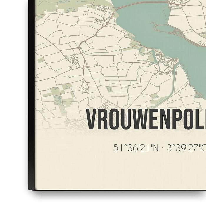Bestelle das digitale Kunst Bild Alte Karte von Vrouwenpolder (Zeeland) von Ortsdrucke als Reproduktion auf Leinwand, Alu-Dibond, als Poster, Fototapete oder Acrylglasbild.