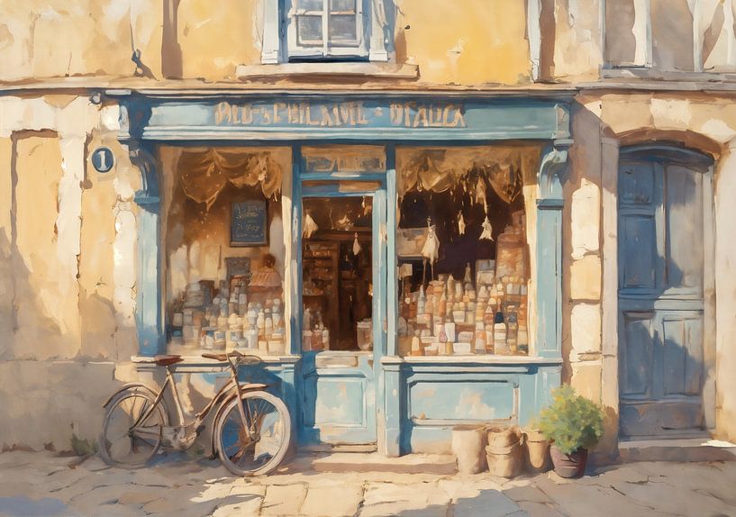 Bestelle diese Malerei Alte Ladenfront in einem französischen Dorf von Kees van den Burg als Reproduktion auf Leinwand, Alu-Dibond, als Poster, Fototapete oder Acrylglasbild.