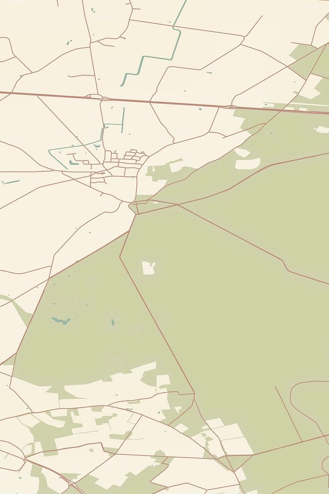 Retrokarte von Haarle, gelegen in Twente, in der Gemeinde Hellendoorn, Provinz Overijssel. Die Karte zeigt öffentliche Straßen, Wasserläufe (Seen, Bäche und Gräben) und Wälder in und um Haarle. Darüber hinaus enthält die Karte die Koordinaten von Haarle.