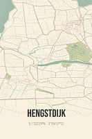 Retrokarte von Hengstdijk, gelegen in der Gemeinde Hulst, Provinz Zeeland. Die Karte zeigt öffentliche Straßen, Wasserläufe (Seen, Bäche und Gräben) und Wälder in und um Hengstdijk. Darüber hinaus enthält die Karte die Koordinaten von Hengstdijk.