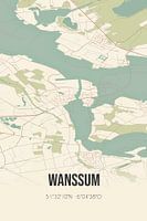 Retrokarte von Wanssum, gelegen in der Gemeinde Venray, Provinz Limburg. Die Karte zeigt öffentliche Straßen, Wasserläufe (Seen, Bäche und Gräben) und Wälder in und um Wanssum. Darüber hinaus enthält die Karte die Koordinaten von Wanssum.