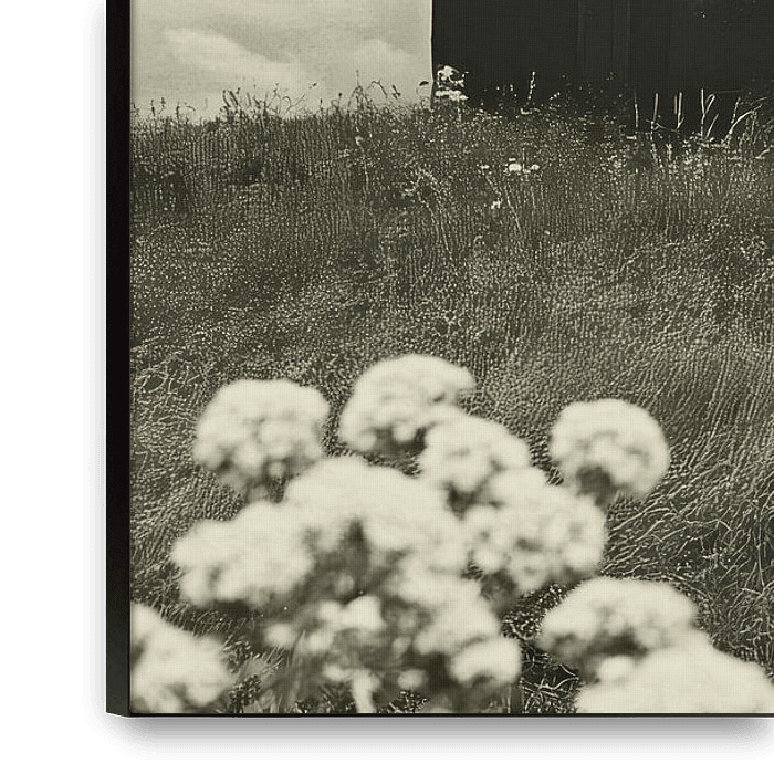 Dieses Kunstwerk hat ein elegantes und geheimnisvolles Aussehen mit einem starken Kontrast zwischen Hell und Dunkel. Der Stil erinnert an eine Mischung aus Illustration und Kunstfotografie und verleiht der Landschaft eine ätherische, grafische Qualität. Die schwarz-weiße und subtil abgetönte Komposition verleiht dem Werk ein zeitloses…