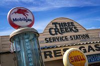 Alte Tankstelle in Neuseeland. Three Creeks Südinsel. Pumpstation. Zapfsäulen.