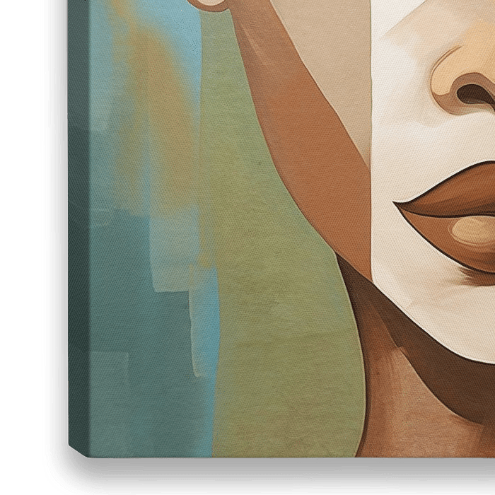 Abstraktes, ausdrucksstarkes Porträt einer Frau in warmen Erdtönen zum Thema Alter Ego.